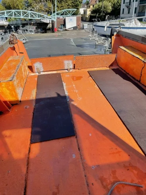 Barge de travail polyvalente, dotée d’une plateforme avant ouvrante pour un chargement facile au niveau de l’eau ou de la berge. Mesurant 8,40 m x 2,90 m, elle est équipée d’un moteur Volvo 6 cylindres (1810 heures). Idéale pour le transport d’équipements, plongeurs et scaphandriers, elle est en bon état de fonctionnement, avec immatriculation à renouveler. Anciennement utilisée dans un port de plaisance en eau douce.